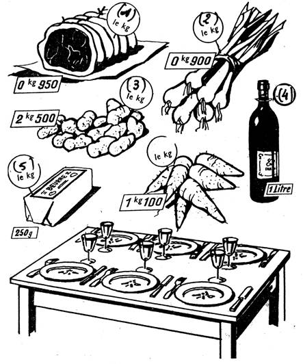 terre = 2,30 € le kg ; carottes = 1,50 € / kg ; beurre = 3,20 € le