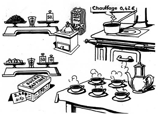 le café vaut 3,5 € le kg ; le sucre 2,20 € , …… |