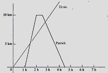 graphique montre les déplacements de Denis et Patrick. Denis est à pied .