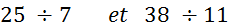 Tu sais que -^- =19 : 7, Posons la division, Complète les encadrements ci-dessous