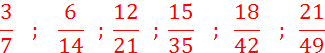 fractions équivalentes à la fraction donnée.(indiquer le coefficient