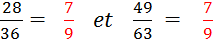 forme d’une égalité simple les fractions équivalentes suivantes ,en utilisant le produit en