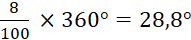 pourcentage des moins de vingt ans est de 8% ; l’angle du secteur le