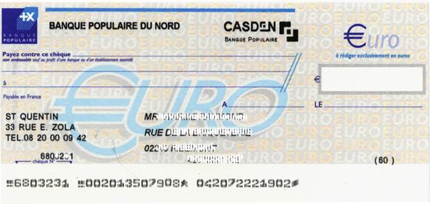 6°) Remplir le chèque