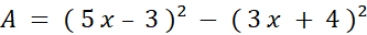 x – 3 )² - ( 3 x + 4 )² Vous remarquez que ( 5 x – 3 )² - ( 3 x + 4