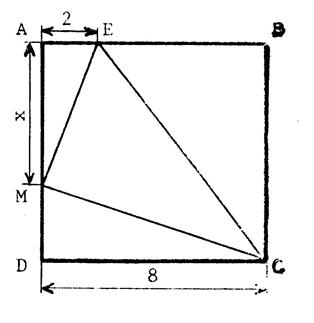 Mise en équation : « EMC » est un triangle en « E » se traduit par « MC² = …………+ …..……. » En remplaçant par les valeurs du « 1° » on obtient ( 8 – x ) ²
