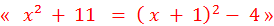 + 64 = ………… Résolution de l’équation : vous transposez : …………………………………………………………….. Voyez-vous une factorisation possible ?