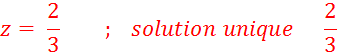 obtient On alors : C'est-à-dire : L’équation possède la solution unique : |