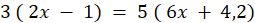 3 ( 2x - 1) = 5 ( 6x + 4,2)