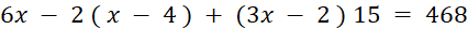 4 ( 2 x -3) + 7 - 6x - 5 + 3 ( 6 - 4x) = 0