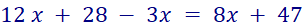 8 x - 12 + 7 - 6 x - 5 + 18 - 12x  = 0