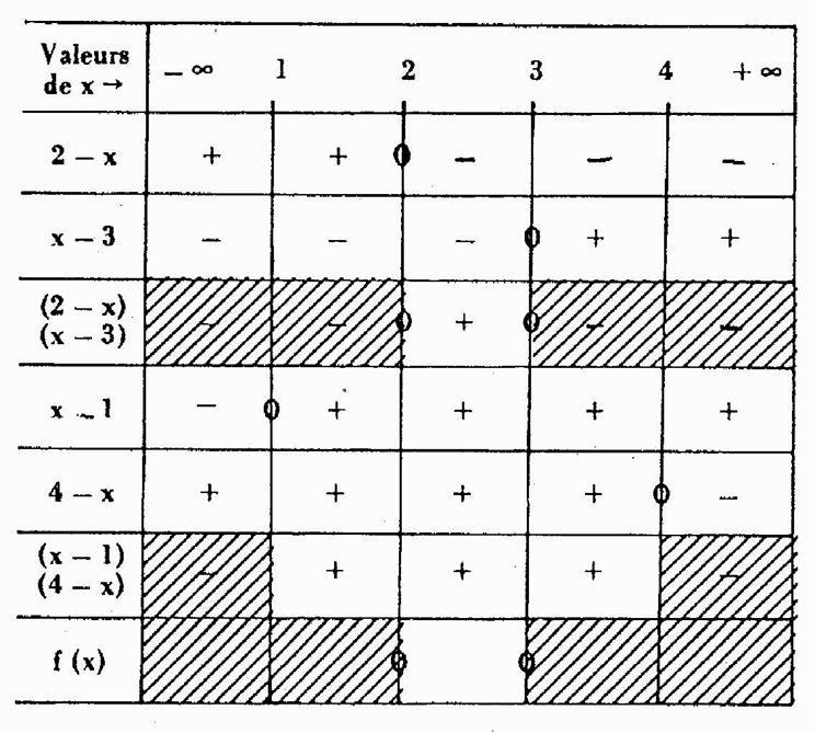 ( 2 – x) ( x – 3)    0     et   ( x – 1)(4 – x)    >  0