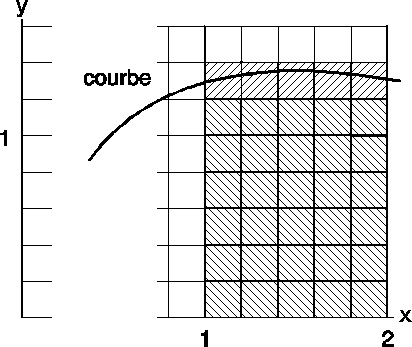 veut déterminer l’aire située sous la courbe délimitée par la courbe, l’axe des