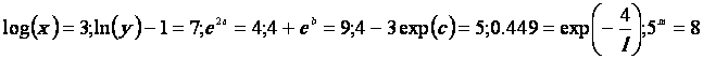 ln(0,08) = ................... ; ln(.............) = 0,45 ; ln(.............) = -2