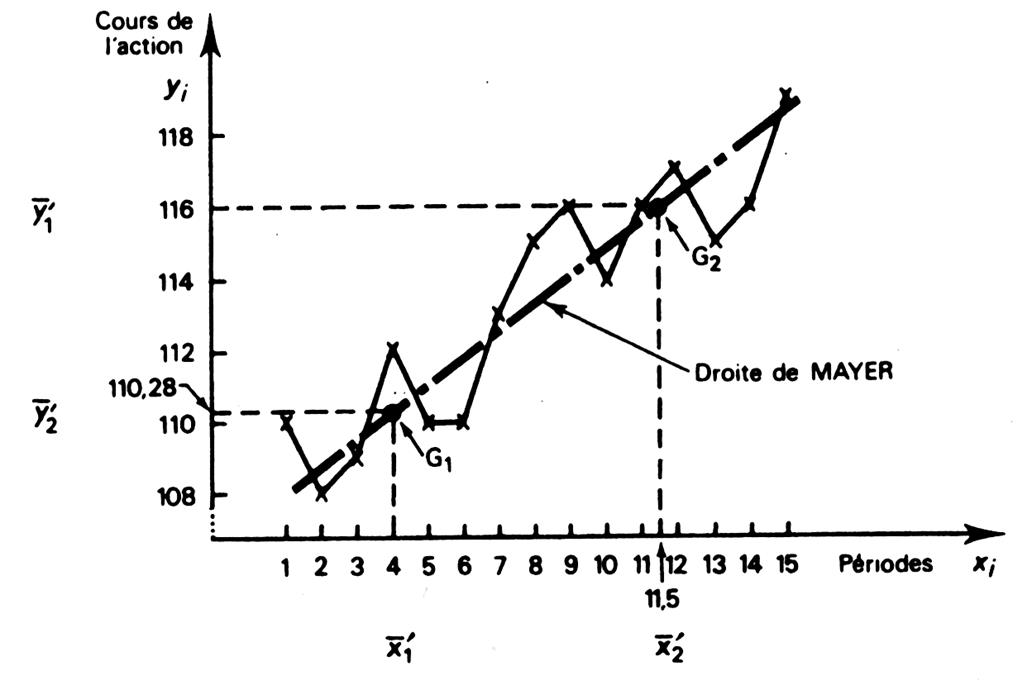 savons que la droite passe par le point moyen ( 4 ;