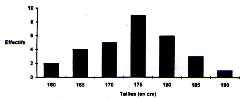 l’axe Ox représente les valeurs du caractère quantitatif ; l’axe Oy les valeurs des effectifs