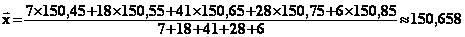 0,09867 ] = [ 150,55933 ; 150,75667] soit en arrondissant au dixième : [ 150,6