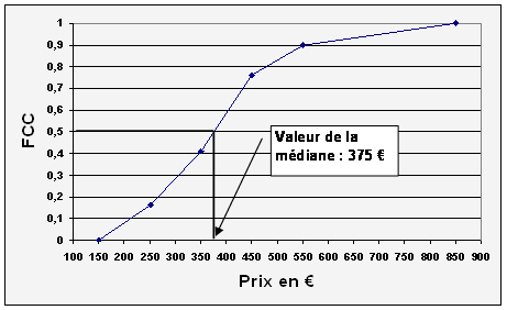 médiane car au point d'ordonnée 31 correspond 8000 en abscisse.