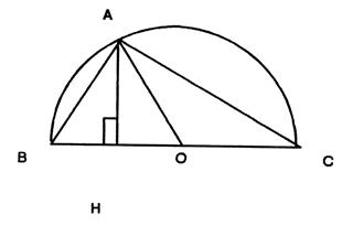 Dans un triangle ABC rectangle en A on donne AH = 28 et AO = 50.