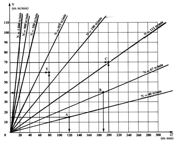 Info : la vitesse de coupe est obtenue expérimentalement dans un