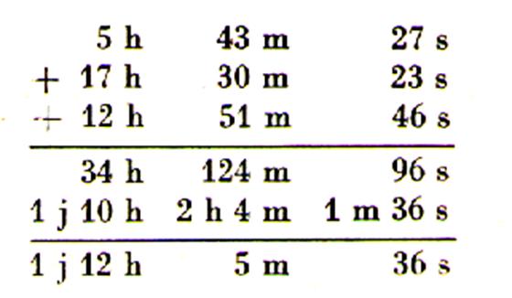 - exemple 2 : soit la durée d’un parcours est de 5 h 35’ 28’’