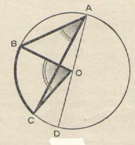 plus l’angle DOC divisé par deux . Ainsi l’angle BAC est égal à l’angle BOC divisé par deux . |