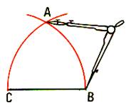 De C et B comme centre ; tracer deux arcs de cercle , se coupant