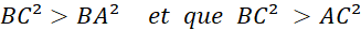 est un triangle rectangle en « A ». Nous allons comparer l’hypoténuse aux deux autres