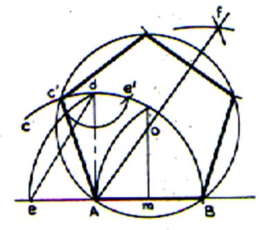 centre « o » ;le côté du pentagone est la corde de l’arc « c d » . |