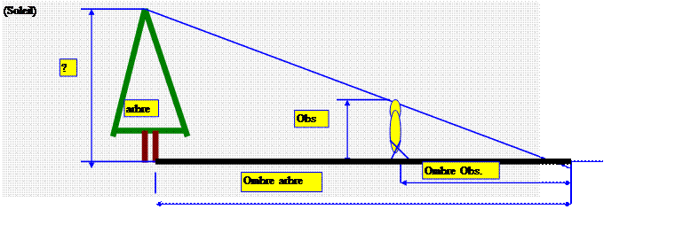 des ombres (point le plus éloigné de l’ombre de l’arbre ) : On établit la relation de proportion :
