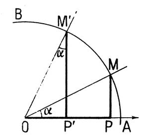 OP’ et OP = P’M’ soit sin a = cos a’ et cos a
