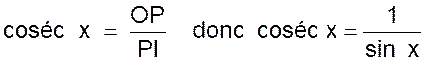 figure ci contre : La sécante d’un angle « x » est le rapport
