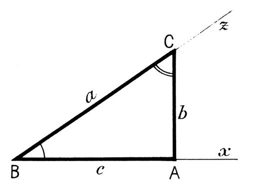 obtiendrait des relations similaires avec l’angle « C ». ainsi : |