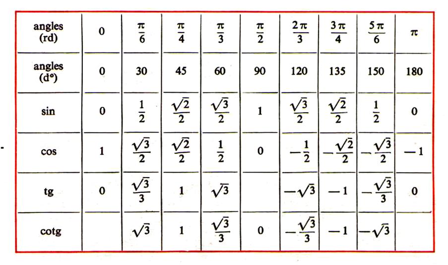 Angles remarquables :