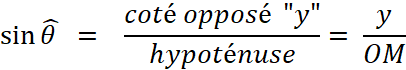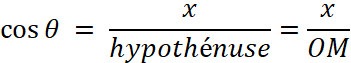 Cosinus et sinus d’un angle : Soit M un point du cercle défini par l’angle AOM = q Le rayon se projette sur les deux axes de