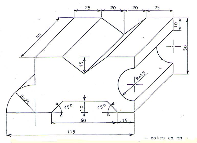 Calculer sa masse (matière en acier d = 7,8 kg / dm3 ) |