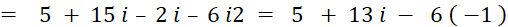 B = - 2 + 5 i – 3 i2 mais : i2 = - 1 |