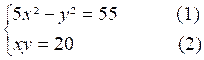 - y² = 55 devient 5 x²