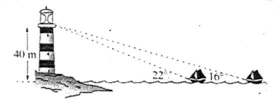 Hauteur à considérer : 40 m , le bateau le plus prés du phare mesure avec son sextant  un angle de 22°  et la bateau le plus éloigné qu phare mesure un angle de 16°.