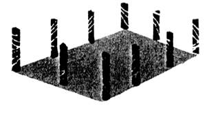 marquant les séparations : (barreaux, arbres, poteaux, etc.); faites