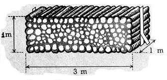 excavation de a) Quel est le volume de cette excavation ? b) Les parois de moellons ont c) Combien de fois, pleine aux deux tiers, pourra-t-elle remplir la