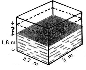large et 3 m de long, qui contenait une hauteur d’eau de 1,8 m avant l’orage. Quelle hauteur en