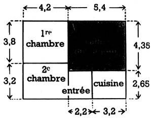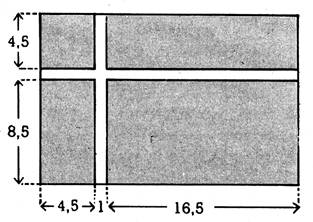 rectangles de 6,5 m de hauteur, 18 m et 12,8 m de bases, et d’un triangle isocèle de 10,4 m de base et 6,5 m de hauteur.