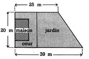 b) La maison mesure 12 m sur 8,5 m , et la cour a