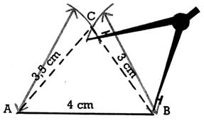un triangle dont les côtés mesurent AB, 4 cm; BC, 3