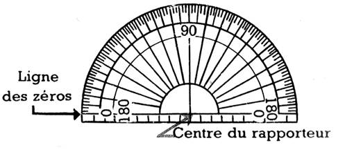 1 angle droit vaut 90° l’angle ; plat formé par la ligne des zéros