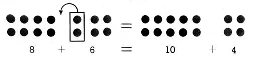 + 6 = 14 ; donc 8 + 7 = 8 + 6 + 1 soit 14 + 1 ou 15. Vous connaissez bien des totaux alors : compter ainsi à partir