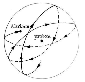 Chaque électron est soumis à une force centripète qui lui impose un mouvement de rotation autour du noyau.