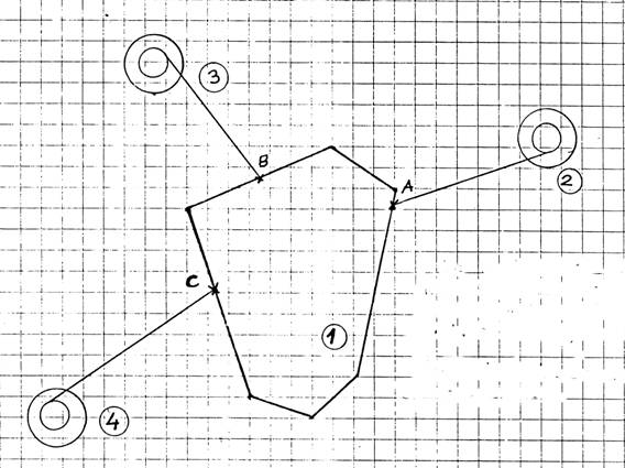 exercées par l’intermédiaire de trois fils reliés à trois dynamomètres.( le solide 1 est en carton, sa masse est