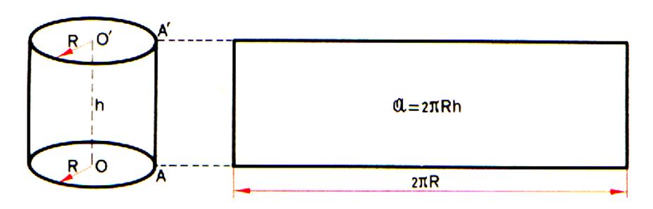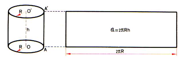 Aire latérale d’un cylindre : En coupant un cylindre de